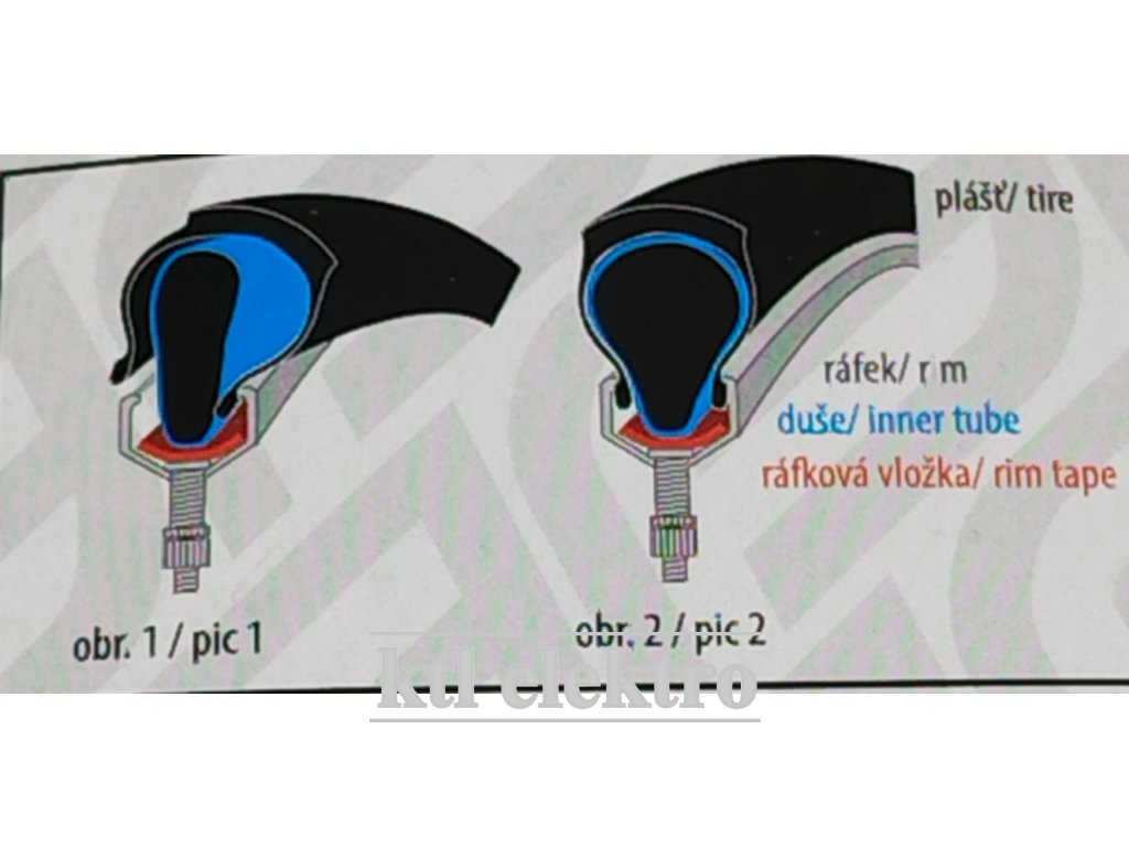 2. Očistěte ráfe, nesmí na něm být ostré hrany. Poté vložte do ráfku ráfkovou vložku odpovídajícího rozměru