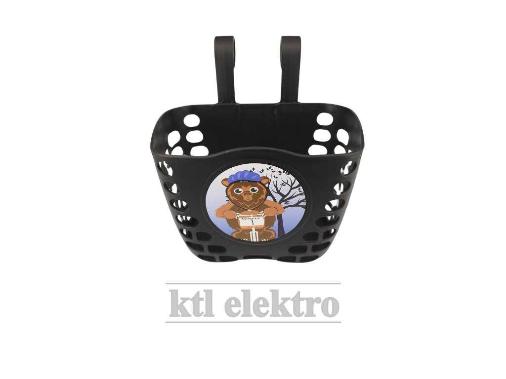 Plastový košík nad přední kolo dětského kola s motivem medvídka.
