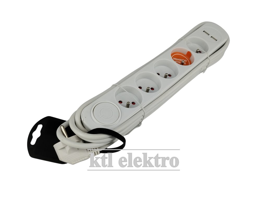 5 zásuvek + 2 USB