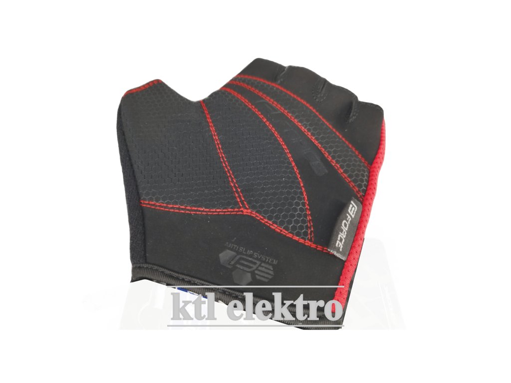 Dlaň je vybavena výstélkami z umělé kůže pro pohodlné nošení, oblast úchopu je vyztužena koženkou a horní strana rukavic je tvořena prodyšným panelem ze síťoviny.
