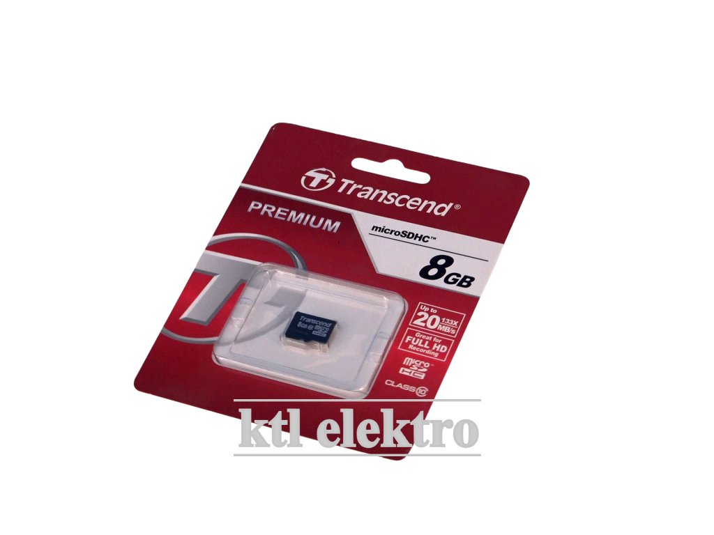 SDHC MICRO CARD 8 GB TRANSCEND, FullHD, až 20MB/s - class 10